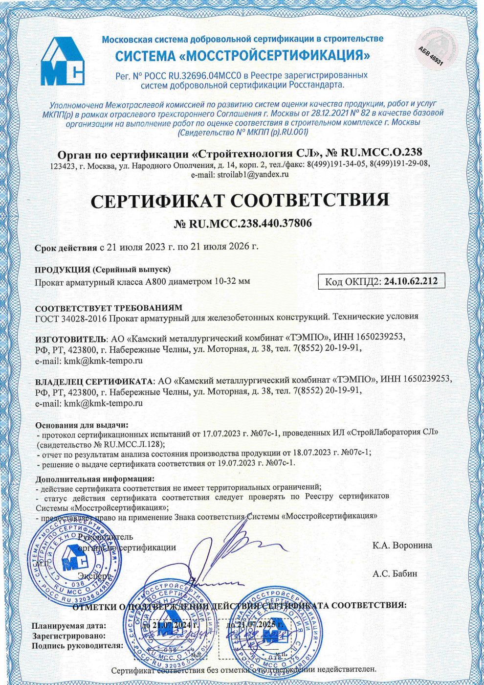 Качество продукции, большие производственные мощности, наличие крытых складов и высокий профессионализм сотрудников позволяют Камскому металлургическому комбинату «ТЭМПО» занимать уверенные позиции среди крупнейших производителей строительной арматуры.